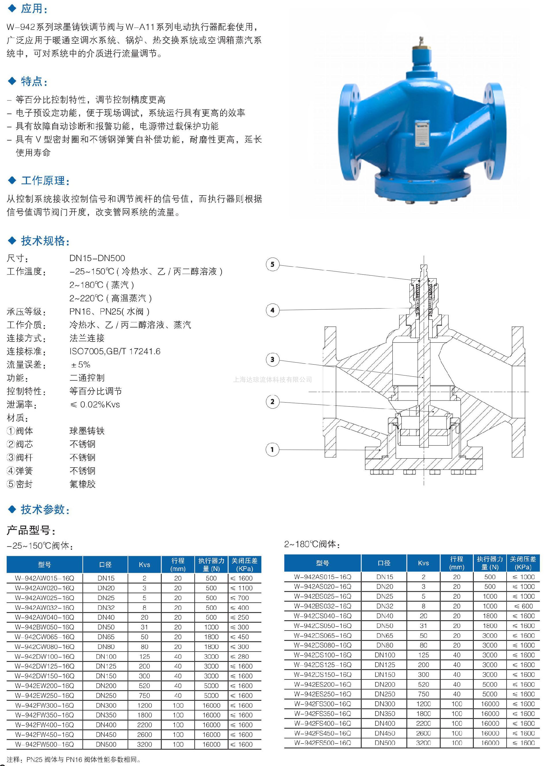 W-942系列球墨铸铁调节阀与W-A11系列电动执行器配套使用,